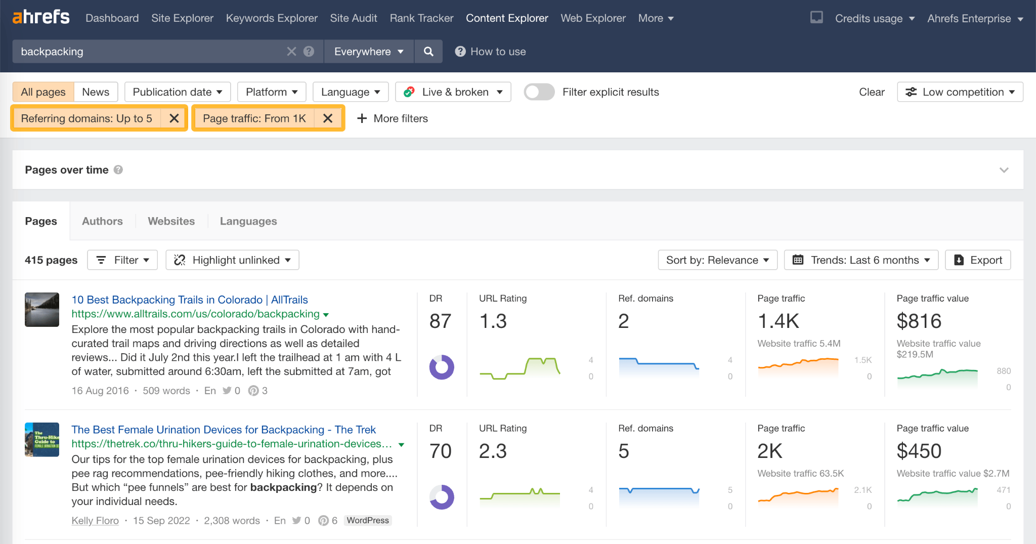 For example, if you are pitching a marketing blog and you see that its competitors rank for “content distribution strategy” but it does not, that is a topic you can pitch. The editor will likely be interested because you are helping them close a gap they may not even know about.